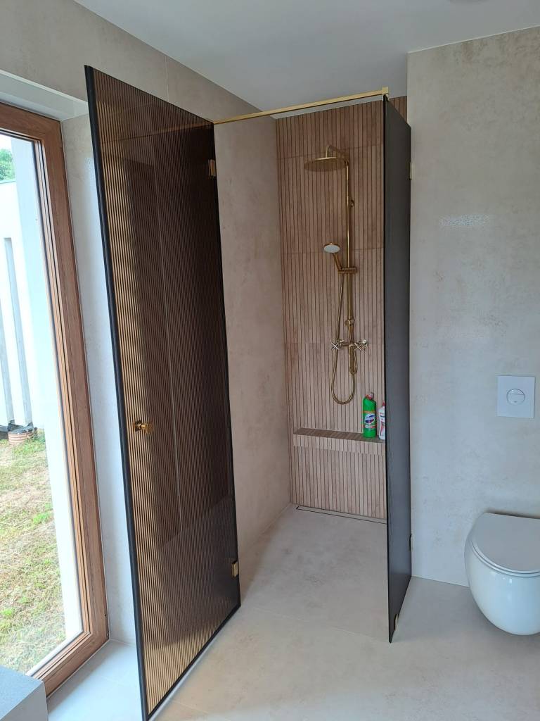 Istnieje możliwość wykonania kabin prysznicowych i drzwi na otworowanych okuciach jednak nie jest to zadanie łatwe – wymaga doświadczenia i precyzji. Ale efekt jest tego wart. Sami wykonaliśmy taką kabinę w mojej firmie – zdjęcia znajdziesz poniżej.