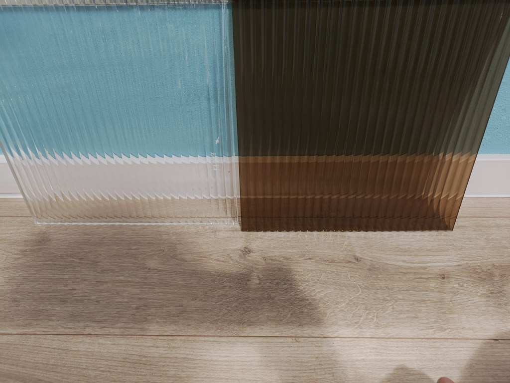 - Visiosun – charakteryzuje się gęstszym i delikatniejszym wzorem, występuje w grubościach 4,6 i 8mm, a co ciekawe mamy tutaj wersję klasyczną bezbarwną oraz matową.